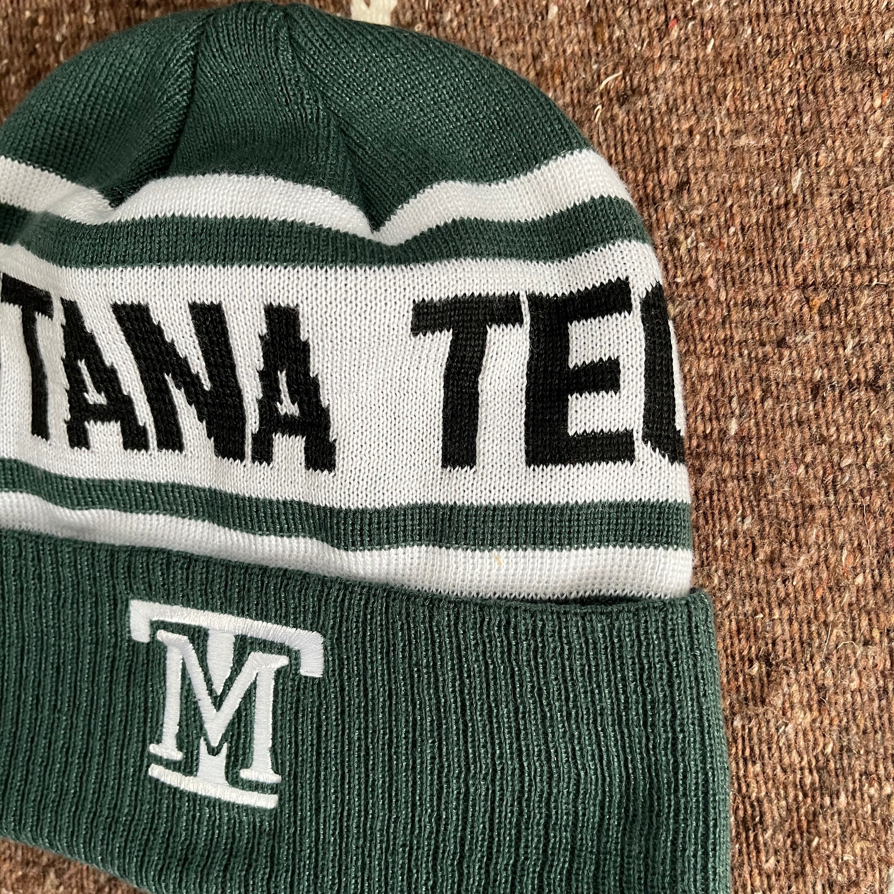 古着 Montana Tech ニット帽 ビーニー アメリカ カレッジロゴ グリーン×ホワイト モンタナ工科大学