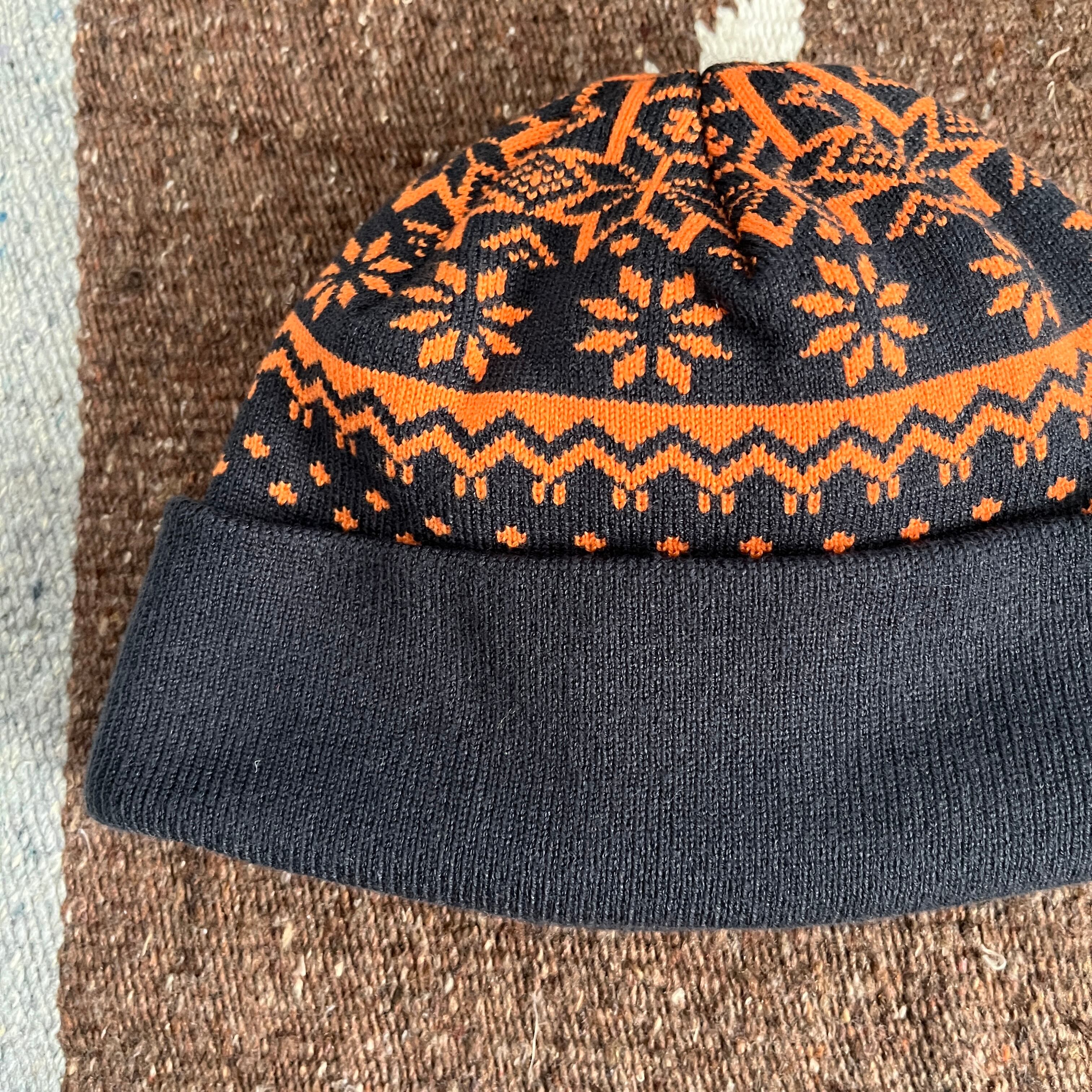 古着 ノルディック柄 ニット帽 ビーニー オレンジ×ブラック スノーボード アウトドア ウィンターアイテム