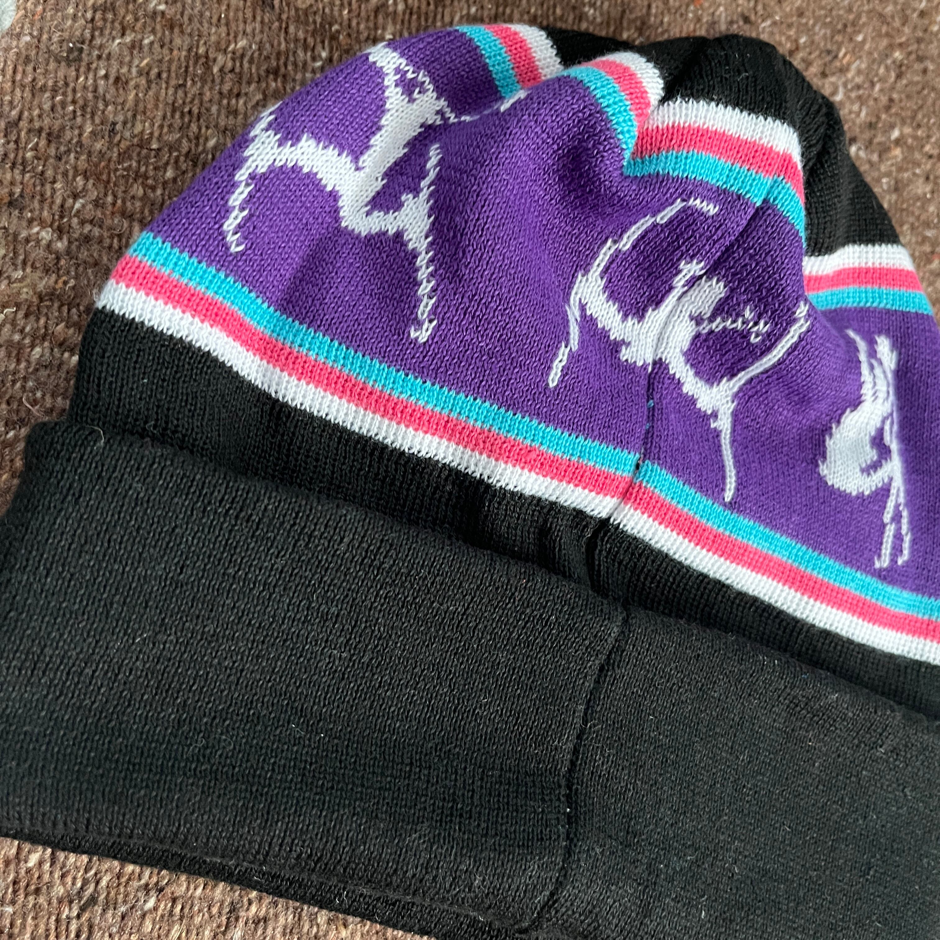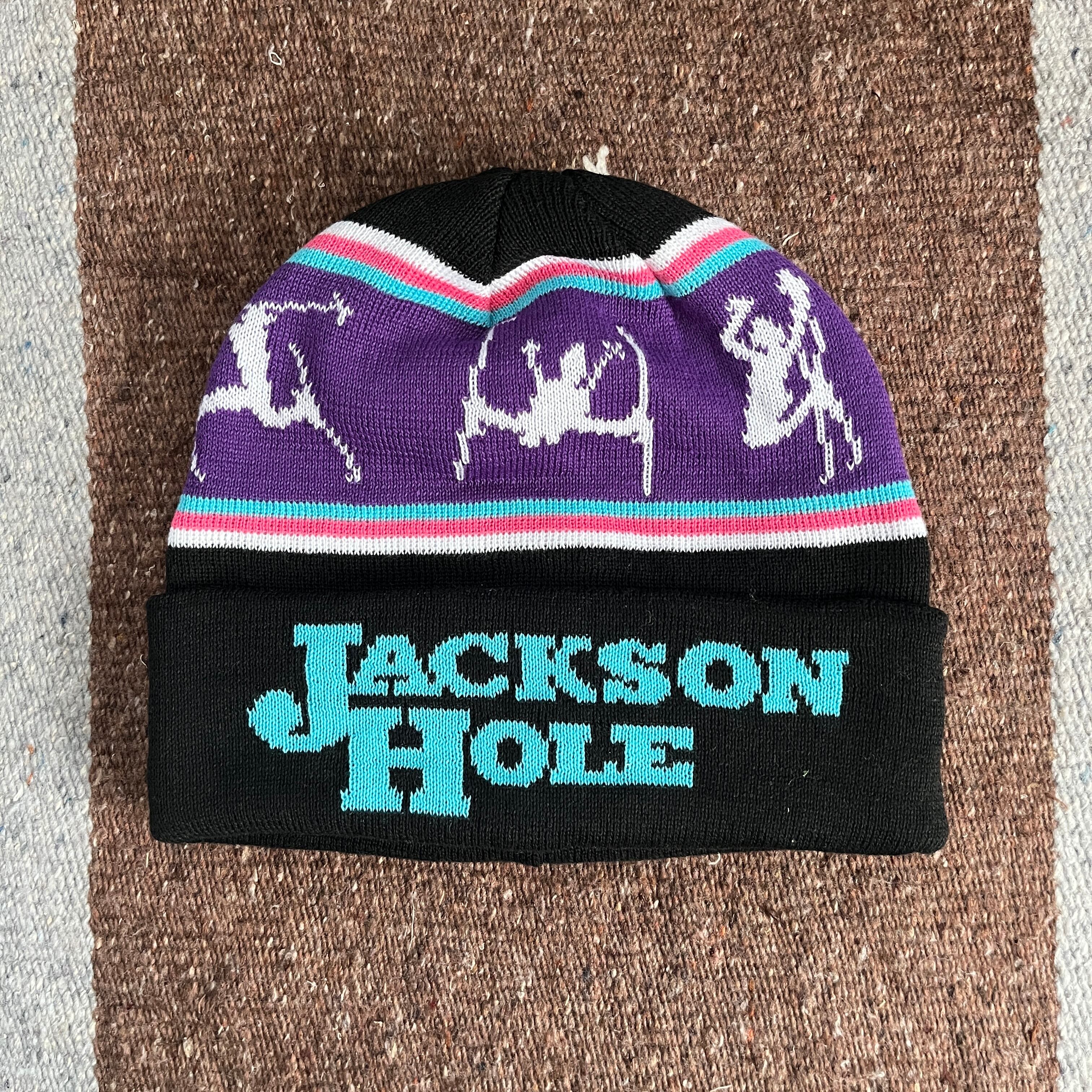 古着 JACKSON HOLE ニット帽 ビーニー アメリカ ワイオミング スキーリゾート カウボーイモチーフ パープル×ブラック