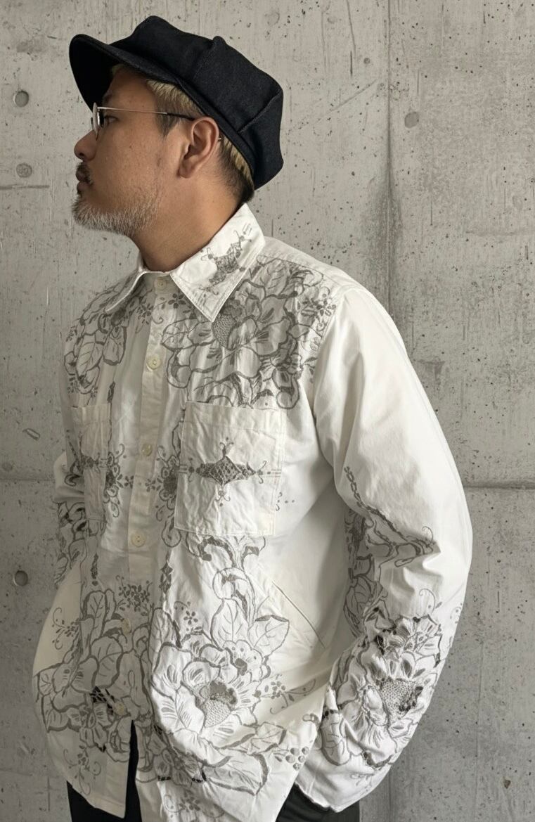 Vintage Lace Remake Shirt – Handcrafted Floral Heritage Piece | IRODORI WORKS【Vintage&Remake Original】