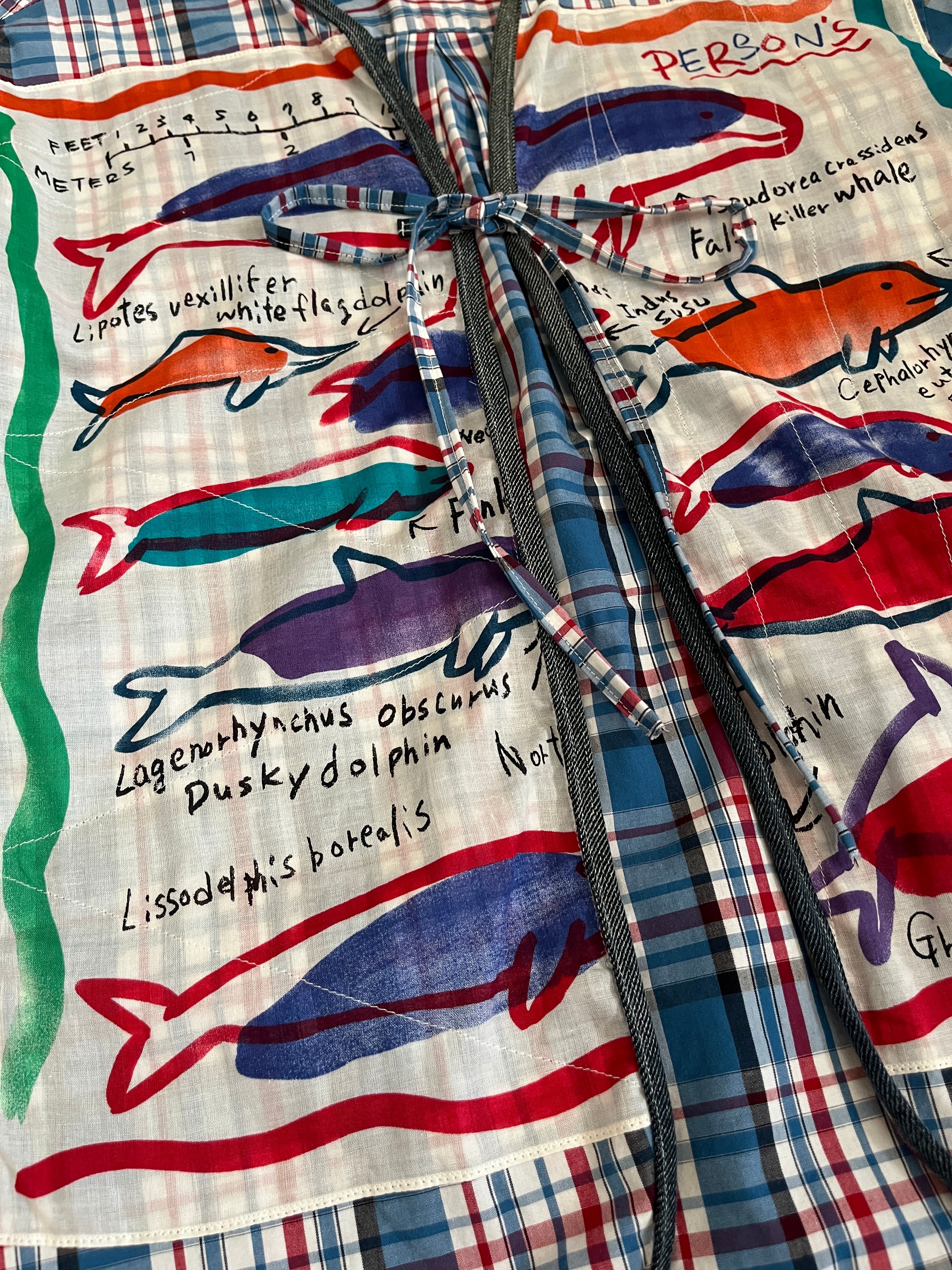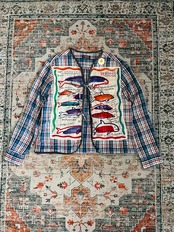 ・装飾:手彫り版画プリント、ヴィンテージハンカチパッチワーク