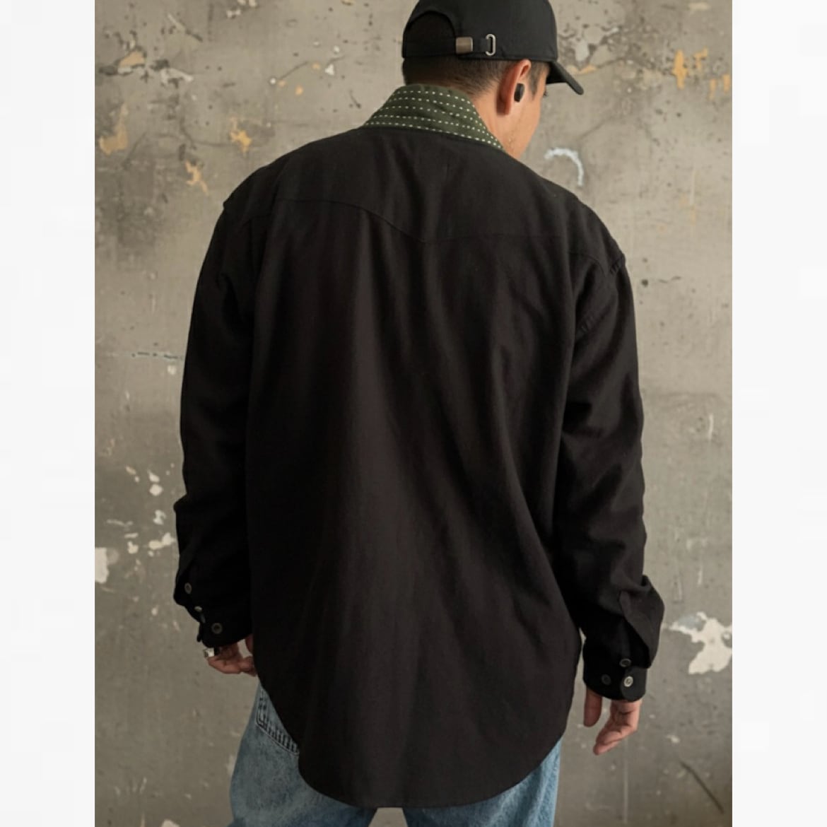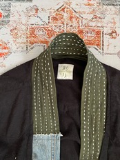 ・襟元:グリーンの刺し子生地を採用し、全体のブラックにアクセントをプラス。