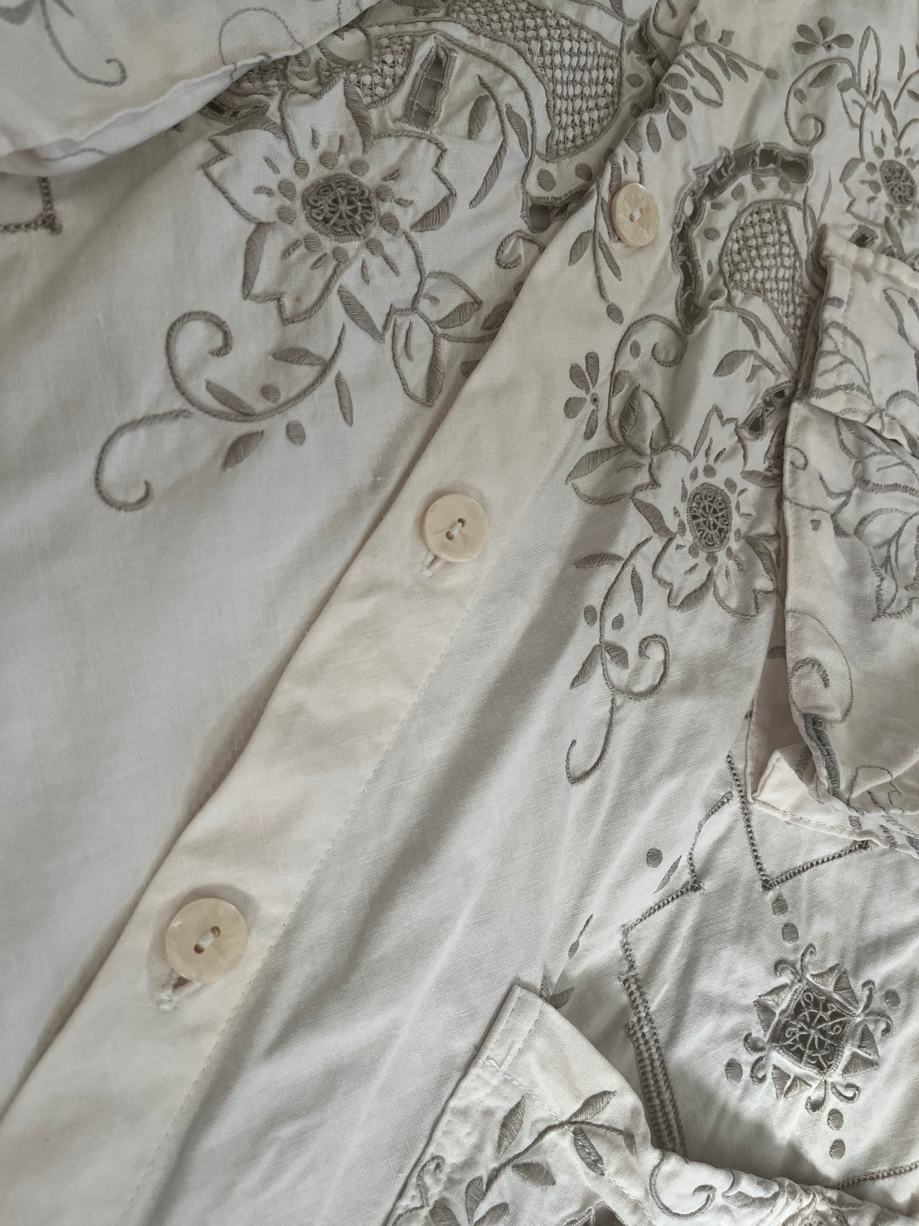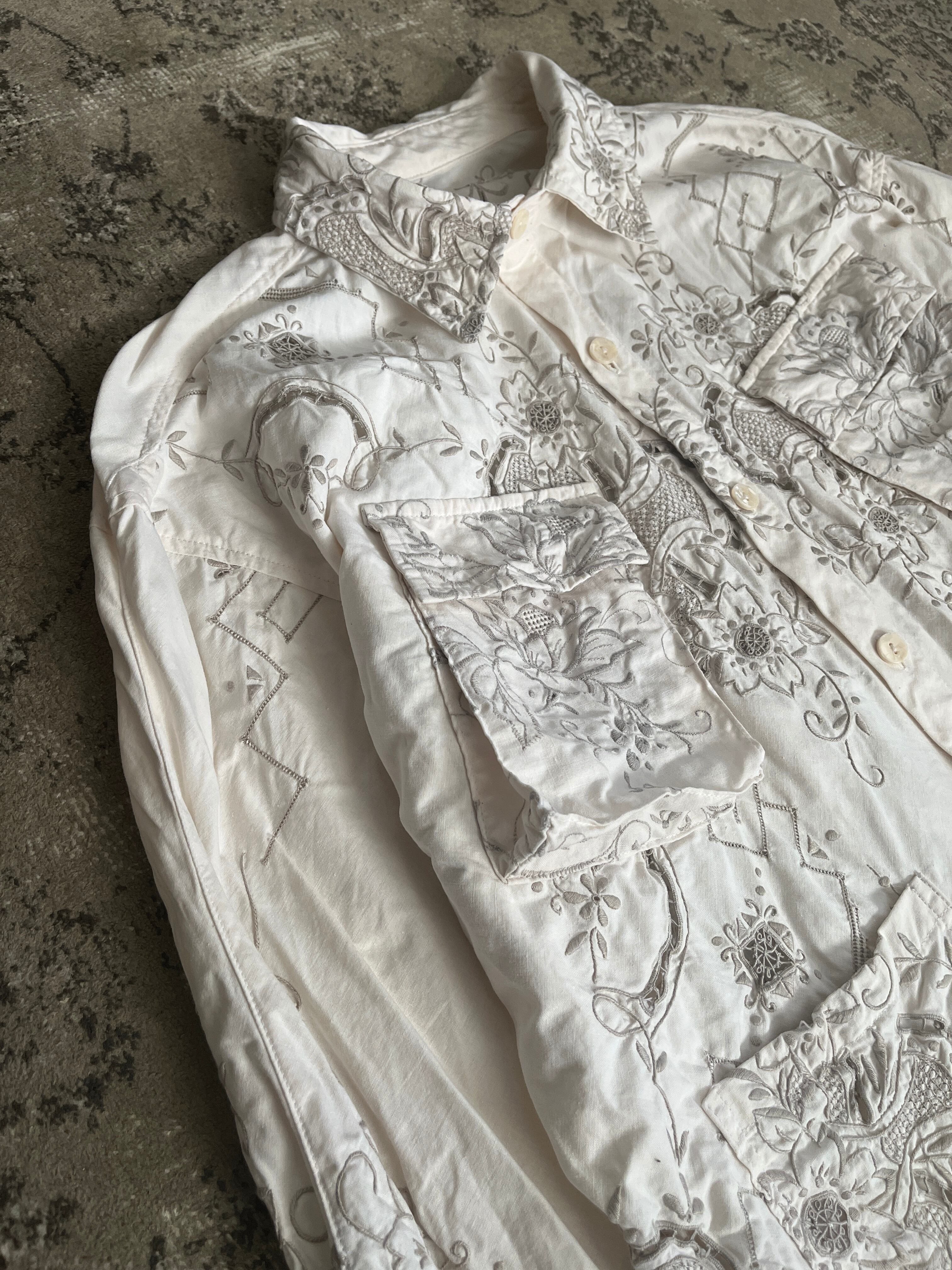 ボタニカル刺繍を全面に施した一点物のリメイクシャツ。